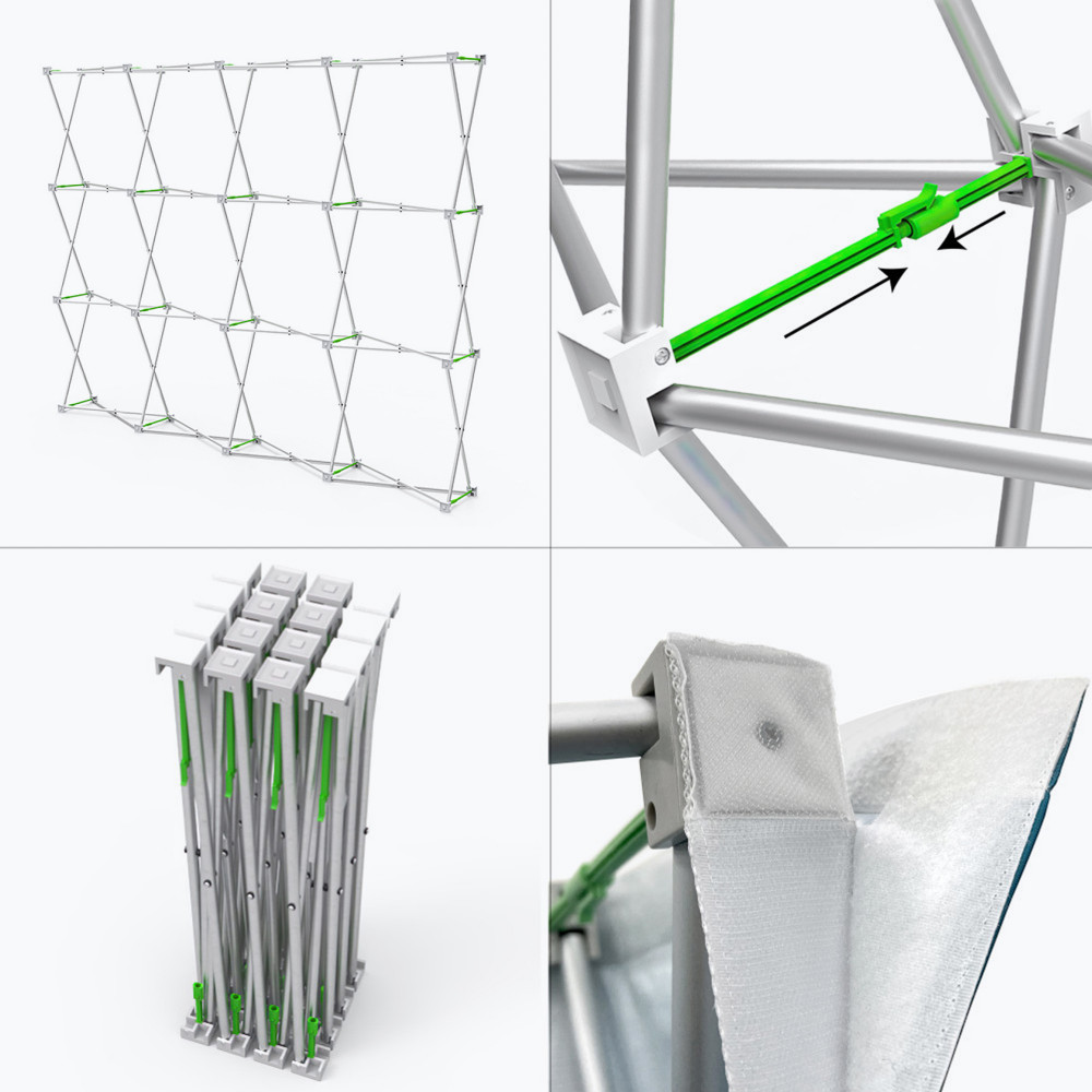 Our 10ft Straight Velcro Fabric Pop Up Hardware consists of a lightweight but durable pop-up frame that is easily expandable and locks into place.