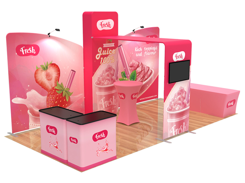 Are you interested in creating an exhibit booth that will be the #1 eye-catcher at your next event? Attract attention and build brand awareness custom 10x10ft booth designs. Our aluminum-framed booths are manufactured to be easily transported and dismantled, offering an efficient option for advertising at any event.