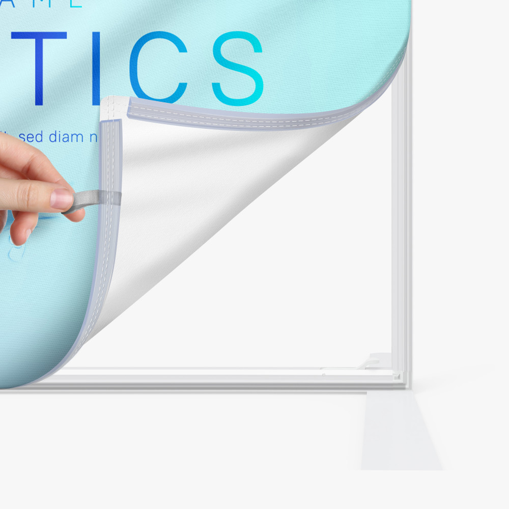 SEG displays utilize a silicone edge graphic (SEG) to create a seamless and visually appealing presentation. It is commonly used in the field of visual marketing and trade shows. The silicone strip is designed to fit into a channel on the display frame. This creates a taut and smooth appearance without any visible seams or wrinkles on the front surface of the display. Changing out SEG graphics is a breeze.