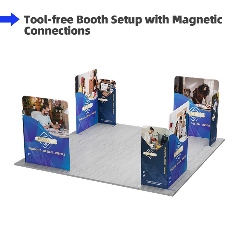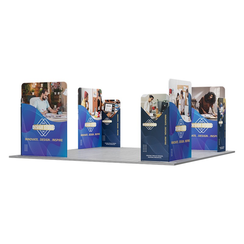 This 20x20ft Magnetic Modular Fabric Display is an innovative, island-style booth designed to maximize visibility and impact at large-scale events like trade shows and expos. With its 360-degree view, it captures attention from all directions, making it ideal for showcasing products or services. The display features a unique magnetic connection system for quick and secure assembly, while its modular design allows for flexible configurations to suit your booth size.