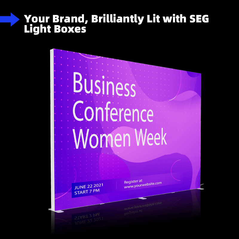 This upgraded SEG light box backdrop goes beyond the traditional single-sided backlit display. It is illuminated with reliable and energy-efficient LED edge lights, delivering vivid and consistent brightness. Each kit includes: 2 custom printed SEG graphics (one for each side), a sturdy aluminum frame, and LED lighting. By installing two single-sided graphics on both sides of the frame, it creates a double-sided display effect—more flexible and practical than conventional double-sided printing.