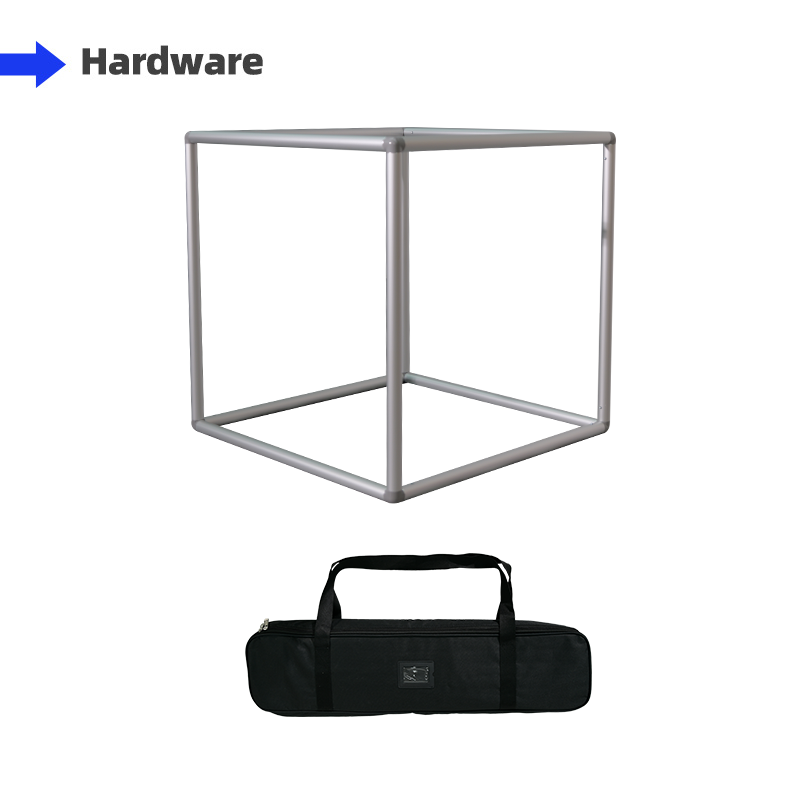This aluminum replacement frame is designed for 3D Cube Displays, providing a durable and lightweight solution. It comes with a convenient carry bag, making transportation and setup easy and efficient.