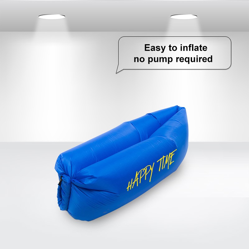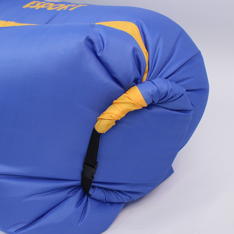 Inflating this sofa is quite easy, you don’t even need a pump. Just need to unfold it, run several steps against the wind to fill it with air, then roll the opening (which is sewn with PP plastic sheet)up and buckle up. You can also use a fan/ hair/leaf blower to fill it up if there is no wind, or the space is not big enough.