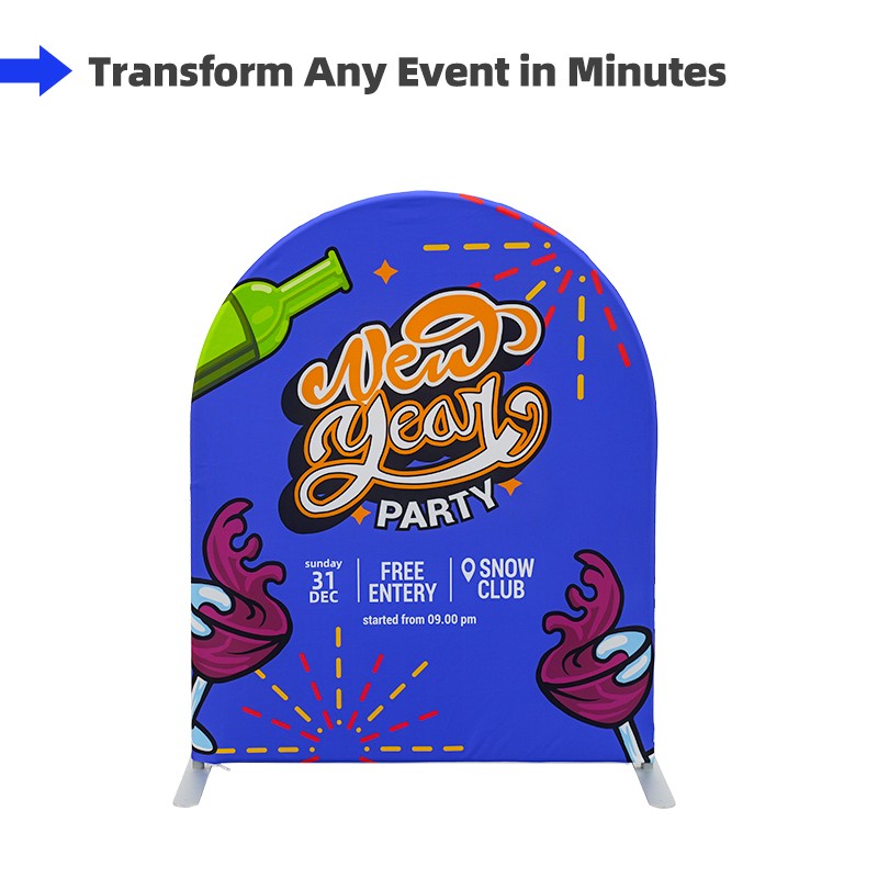 Our arch backdrop is tool-free and effortless to set up. With pre-connected elastic cords inside the round aluminum tubes and a pillowcase-style tension fabric cover, one person can assemble the full display in under a minute. Multiple units can be joined together for a larger, cohesive backdrop wall—perfect for fast event setups.