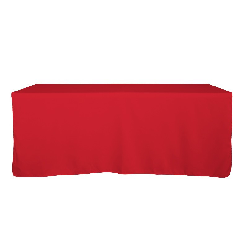 This blank fitted table cover is often used together with a custom printed runner. The fitted design ensures a snug fit over the table, while the polyester material provides durability and ease of cleaning. Adding a piece of table runner on the blank table cover allows you to personalize your marketing message and expose your brand.
