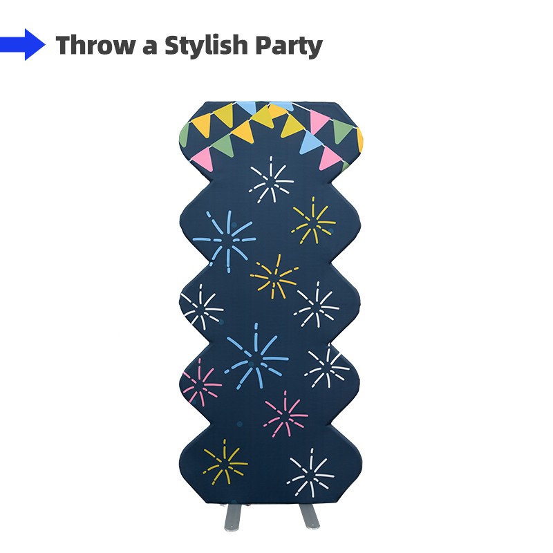 Corrugated spring stand delivers both visual impact and versatile styling options. Use it solo for a clean, modern display, or combine it with other tension fabric stands to create layered, immersive scenes that set the tone for unforgettable memories. Its flexible wave-edge design adds dimension and flair, making it a standout centerpiece across a wide range of event themes—from birthdays to baby showers and beyond.