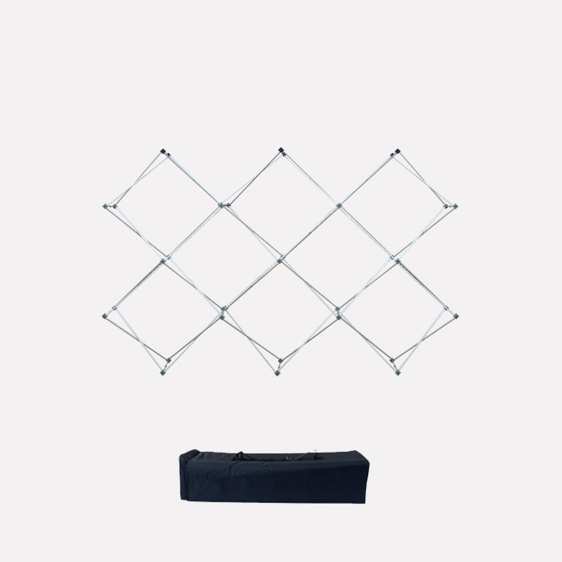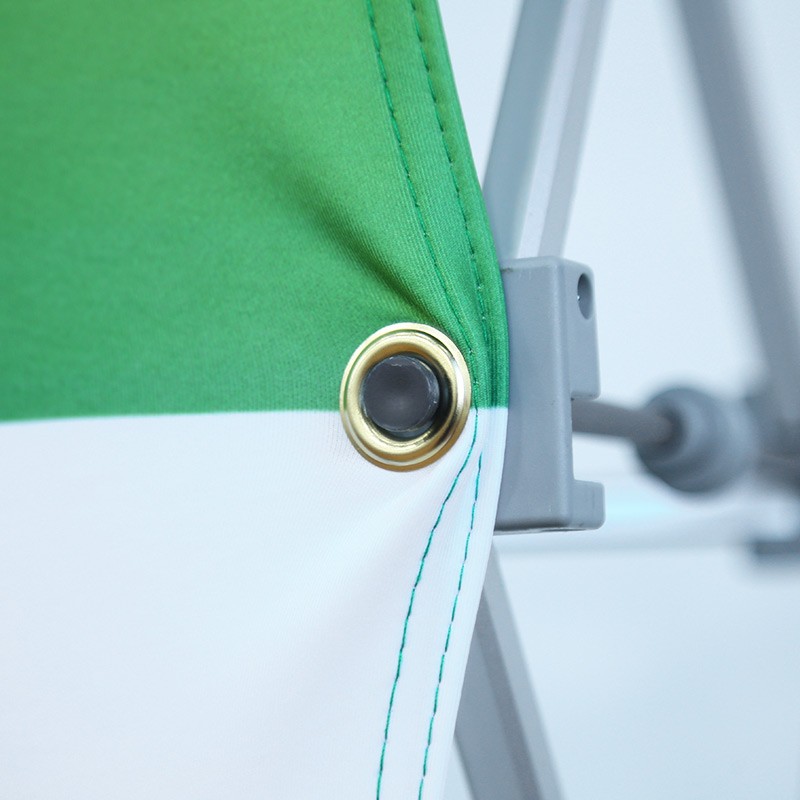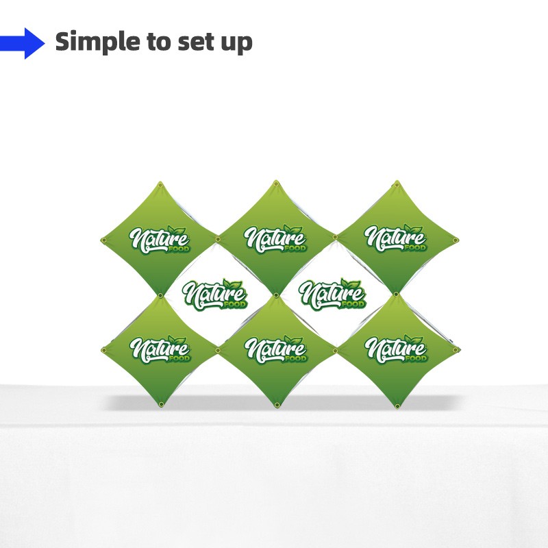 The graphics are made from 240g Elastic Polyester, the elasticity and durability of the fabrics make the replacement of panels easier. They can be easily attached to the frame with grommets at all four corners for a taut appearance.