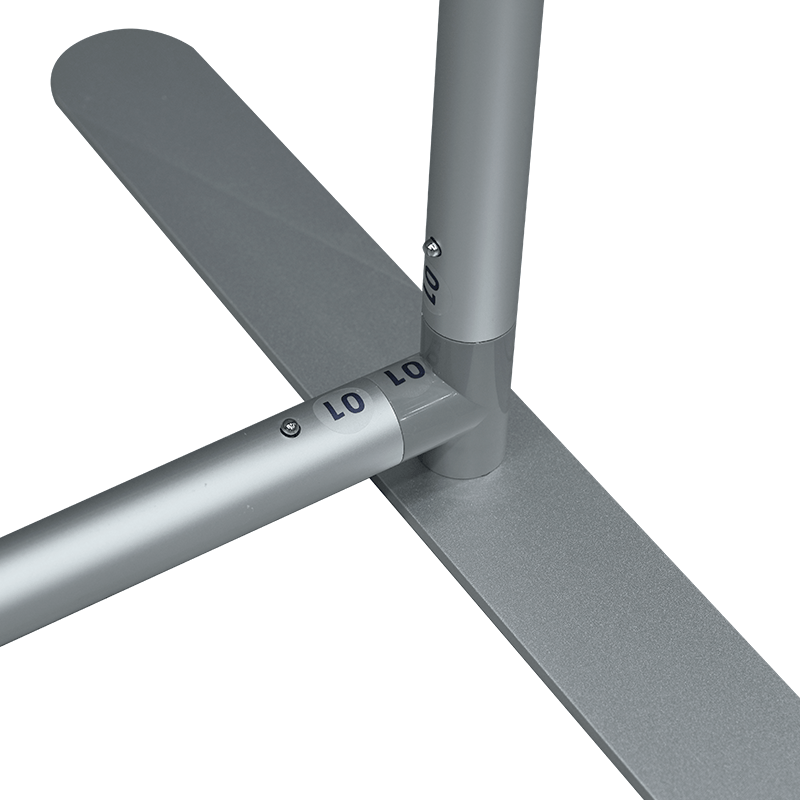 This frame for our Standard Fabric Banner Stand (SKU: BDFBS-S) can be assembled quickly due to the easy locking components on the tubes. The snap-together pieces are also easy to disassemble and store in a compact size. The frame is very lightweight and will come with an oxford bag for easy carrying.