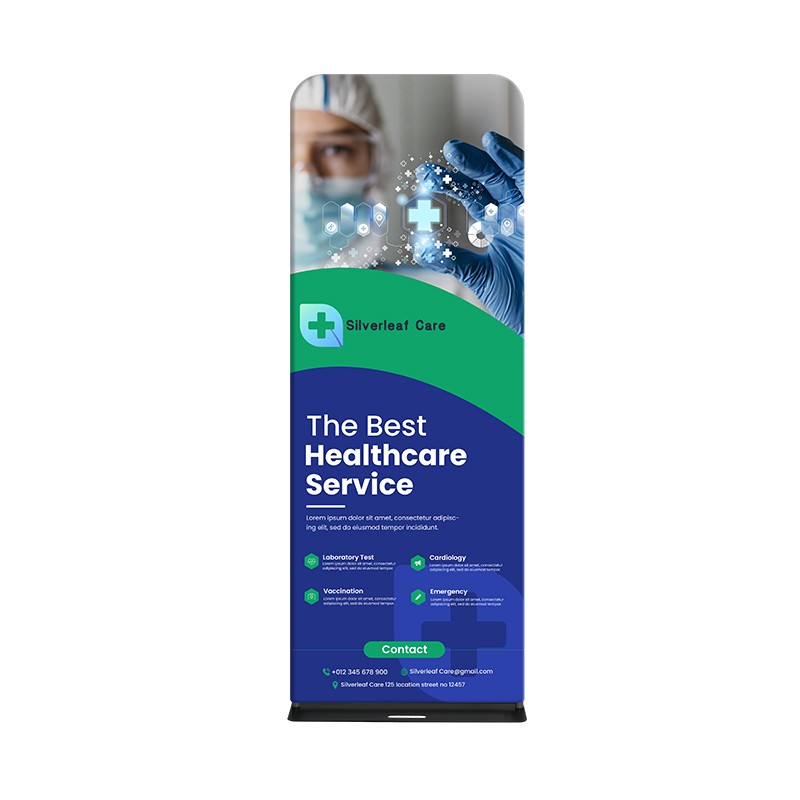 The Premium Fabric Banner Stand is an excellent tool for enhancing and amplifying brand awareness. Your brand logo and graphics are printed in vibrant full color on high-quality, selected fabrics, offering a professional and eye-catching display. This cost-effective solution provides a durable and impactful way to advertise your business, ensuring your message stands out to your audience.
