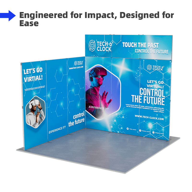 Utilizing SEG technology, the fabric graphics fit perfectly into the frame, creating a smooth, edge-to-edge display without visible seams. The frames are foldable, ensuring quick and easy assembly and disassembly. This design saves time and effort, and it also makes the kit highly portable and easy to store.