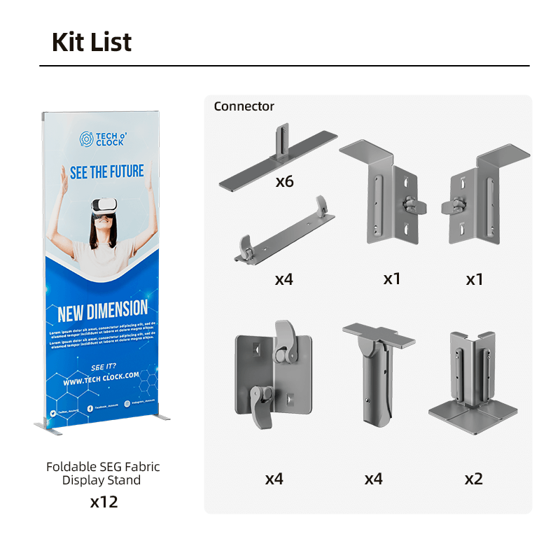 Utilizing SEG technology, the fabric graphics fit perfectly into the frame, creating a smooth, edge-to-edge display without visible seams. The frames are foldable, ensuring quick and easy assembly and disassembly. This design saves time and effort, and it also makes the kit highly portable and easy to store.