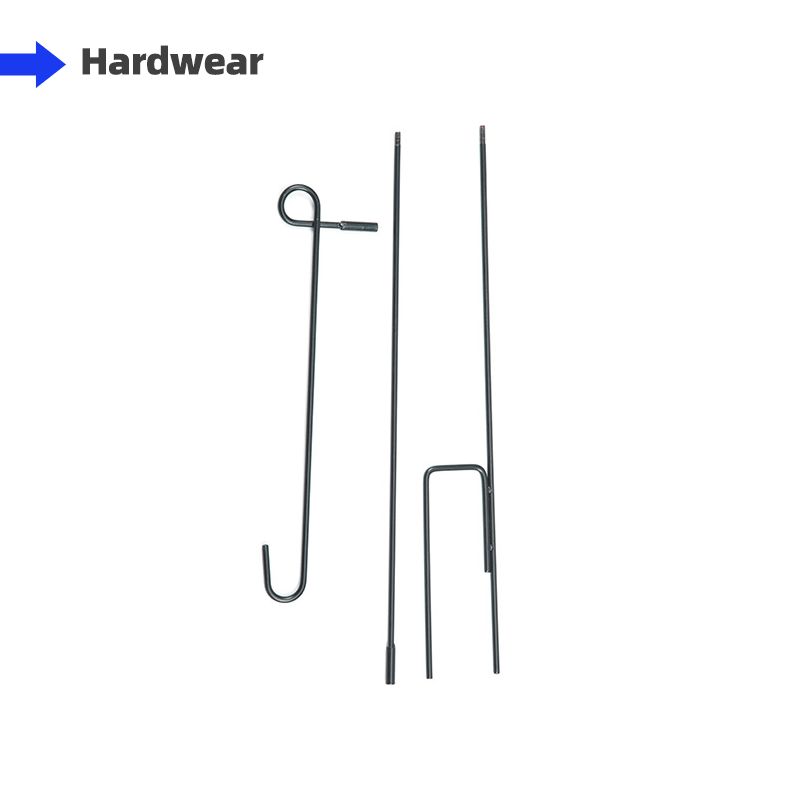 This pole is for the garden flag. It measures 46.4” (H) x 14” (W), made of iron, and is designed to withstand extreme weather conditions. It is easy to assemble and install, you just position it in place and insert it into the ground. You can apply the poles to your own flags or our Garden Flags, but please make sure the pole pockets are not smaller than 0.98” (2.5cm), and the recommended width of the flags should be smaller than 14” (35.6 cm).