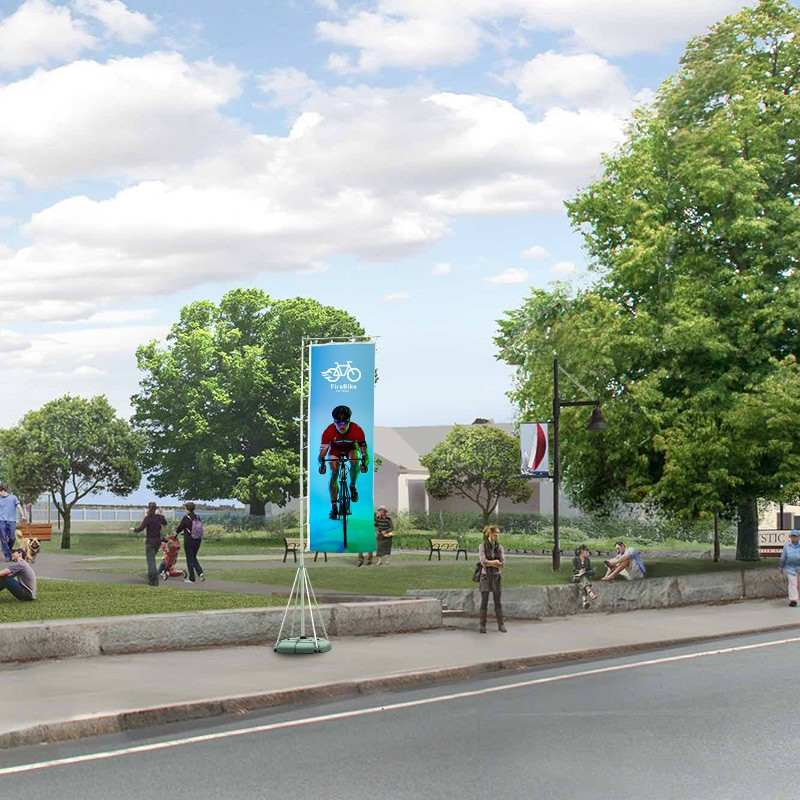 Practical – Equipped with a lightweight telescopic flag pole and plastic water base, this flag will not only grab great attention for your brand with the big display space, but it also adds not too much burden to your journey.
