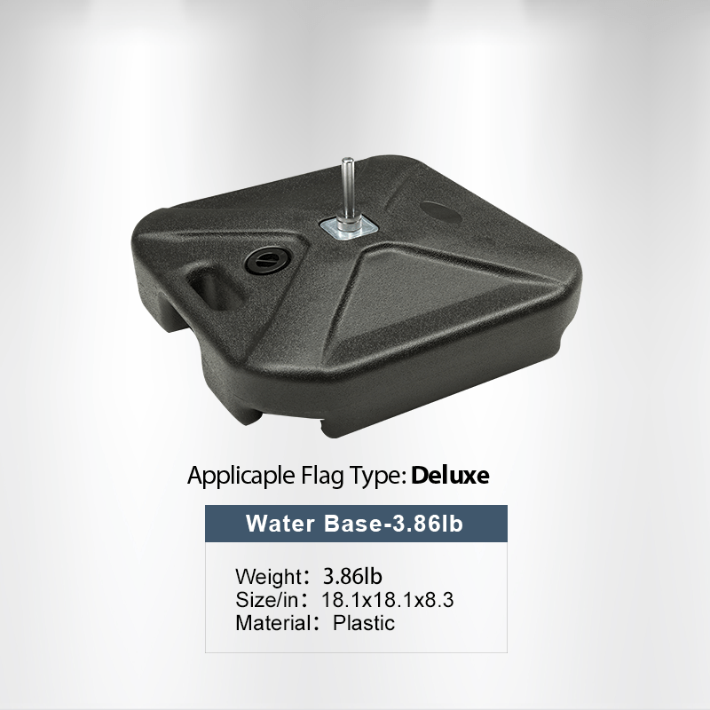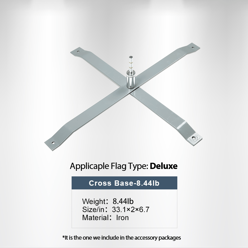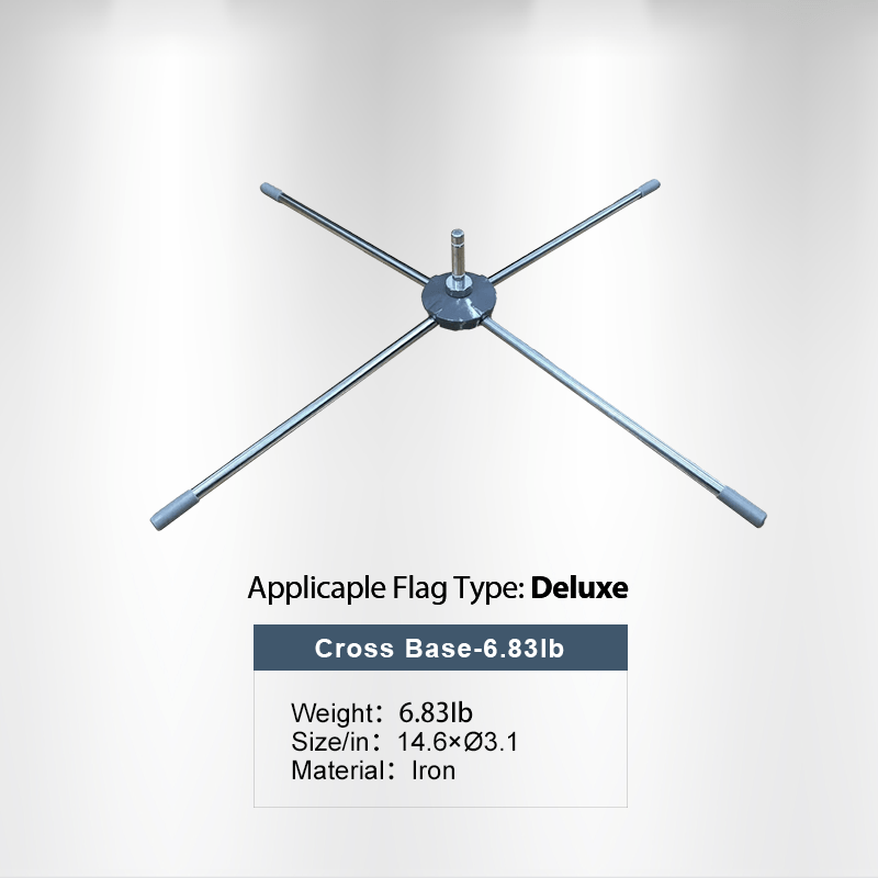 This heavy-duty display flag cross base can be used either indoors or outdoors. Combining the water bag and cross base is the suggested stable base option for all of our display flags.