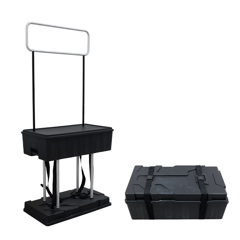It is engineered for the rigors of travel. The hard shell is a robust structure with lockable latches, ensuring your materials stay safe from the warehouse to the show floor. The integrated wheels and ergonomic handle allow for effortless one-person transport, making it the perfect companion for solo exhibitors. Once you arrive at your booth, the transformation is seamless. The case becomes the core of your workstation, providing a sturdy base that stands up to heavy use throughout the event.