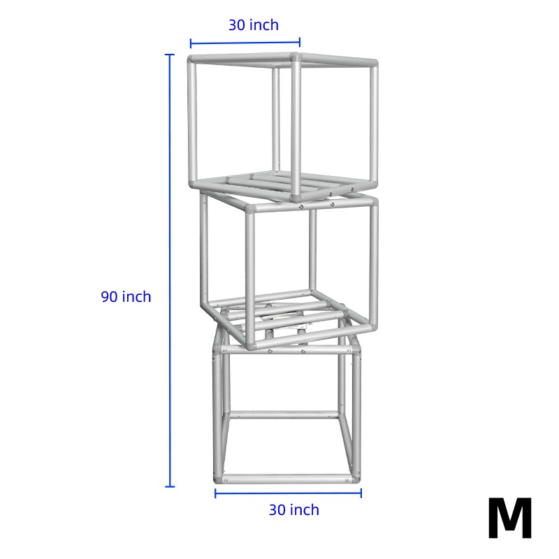 This fabric display cubes are connected through a central support structure, which provides enhanced balance and prevents tipping,making them safer than traditional stacked cubes. The structure minimizes the risk of tipping, ensuring a secure setup in any environment. The cubes display come in a fixed three-cube column design that cannot be separated individually. However, multiple columns can be grouped together to form a creative display wall or custom layout. Assembly is fast and tool-free — one person can easily complete the setup.