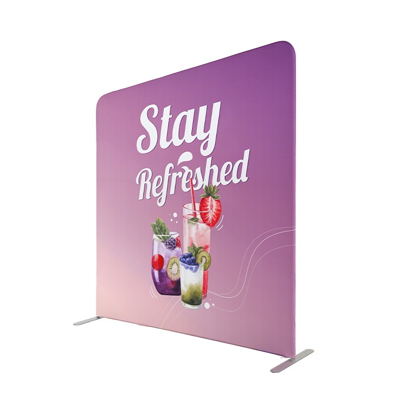 With its streamlined slanted design, this display stand not only adds a touch of style and dynamism but also delivers your brand message in a simple yet powerful way, maximizing space efficiency while creating a strong visual impact. Its versatile uses make it perfect for trade shows, large advertising exhibitions, conference backdrops, and more.