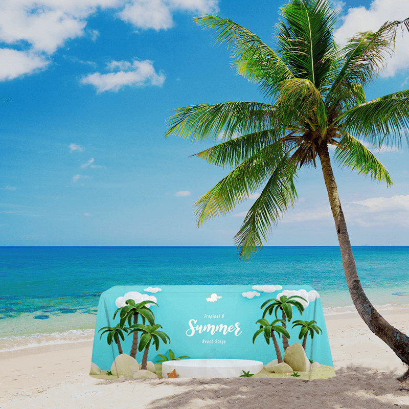 Our table covers are full-color dye sublimated. And you can freely choose the placement of your logo. We offer free artwork service for all orders, and your order will go into production only when you approve the digital artwork proof. Each of our tablecloths is printed with clear, crisp, and vivid graphics, making you always stand out at a marketing event.