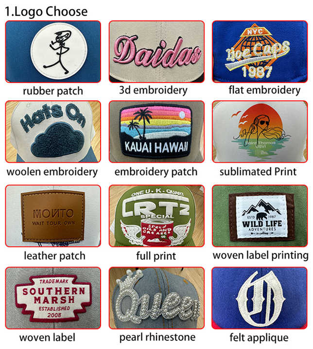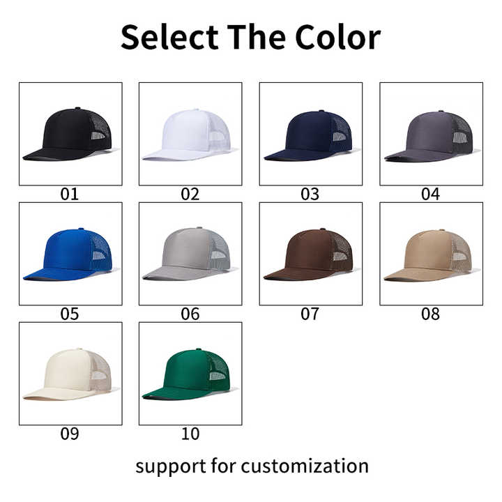 • Logo Position: Customizable placement on brim/visor, front panel, and more